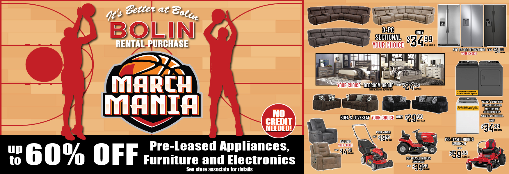 For over 20 years, Bolin Rental Purchase has been offering premium rent-to-own furniture, appliances, electronics, and mattresses to the Middle Tennessee and Western Kentucky community. At Bolin Rental Purchase, we offer high-quality pieces without the hefty price tag.
